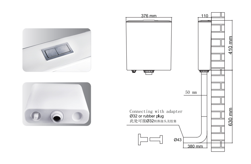 Installation method:Wall mountWater inlet method:BottomFlushing method:WashdownAccessories:Drainage tail throatscrewssealing ringQty:8PCS/CTN