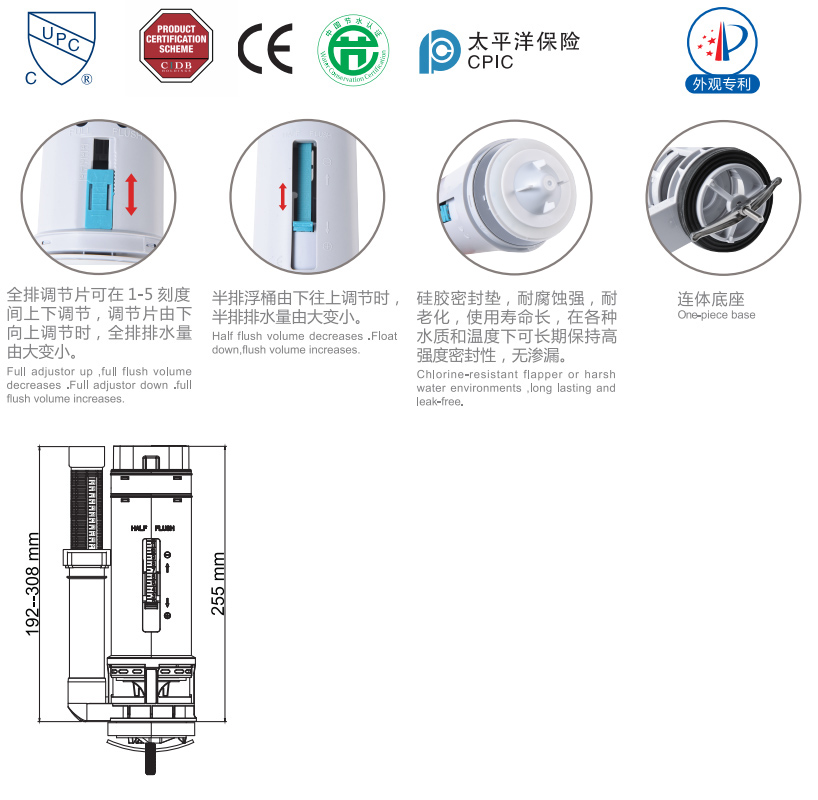 2"冲洗速度(Flush speed):2.2L/S